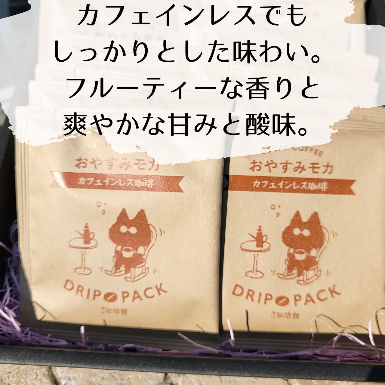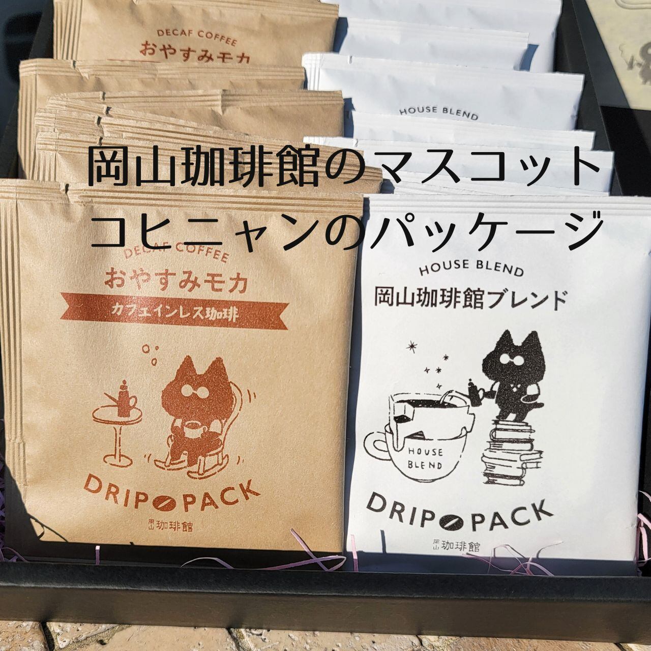 香り豊かな「カフェインレス モカ」とバランスのとれた味わいの「岡山珈琲館ブレンド」が楽しめる、贅沢なドリップパックのセットです。す